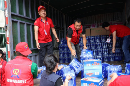6月23日上午,福建省扶老救孤公益服务协会志愿者冒着炎炎烈日,长途跋涉将社会各界捐赠的救灾物资及时送到龙岩市上杭县茶地镇、太拔镇这两个洪涝重灾区,帮助受灾群众渡过难关。