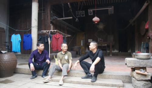 图:土垵村委会主任张文献(右)与张照汉(左)经常走访村民家庭